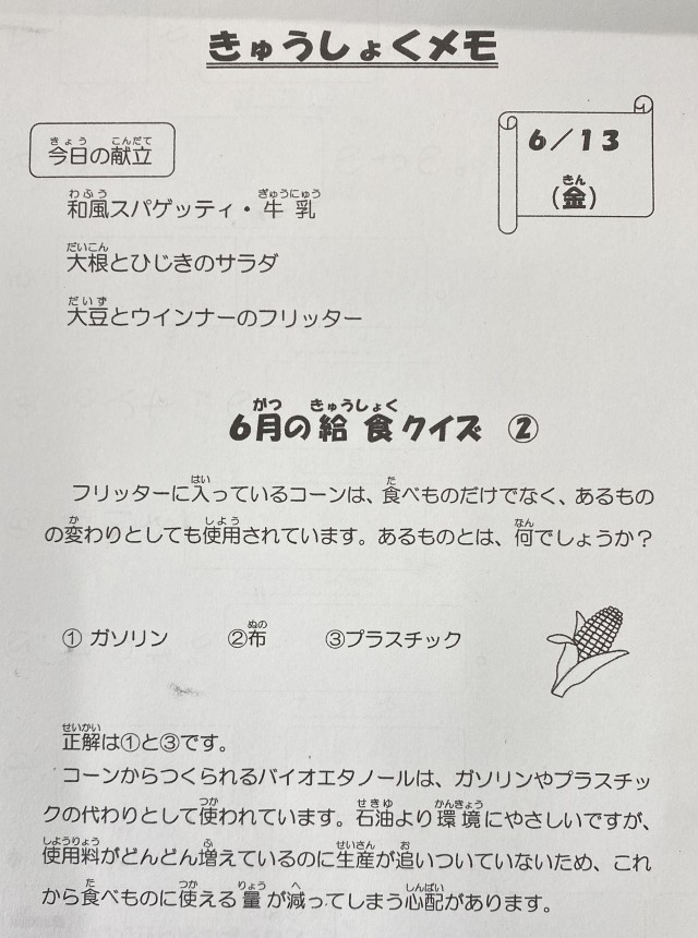 6月13日(金)の給食