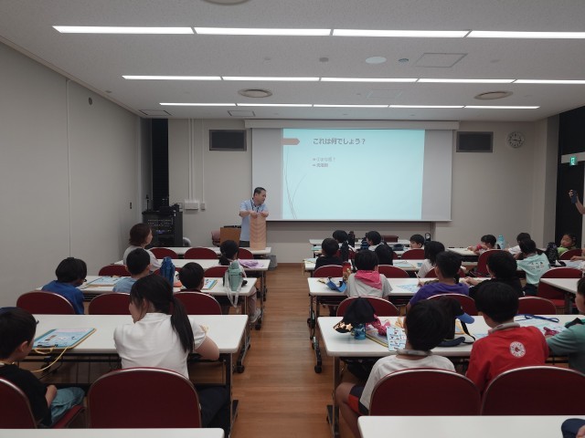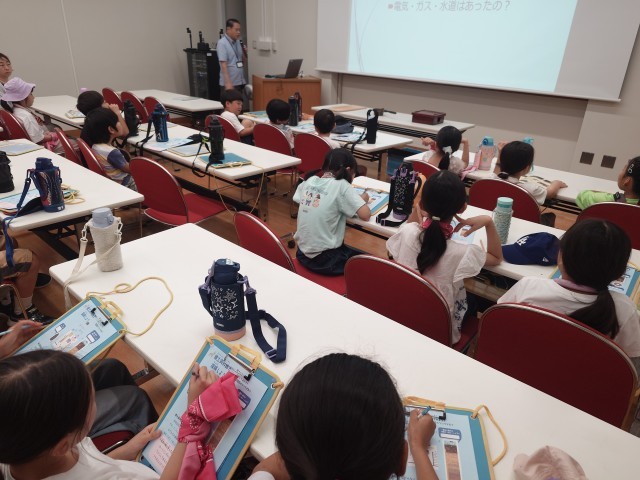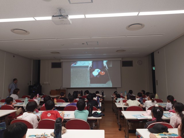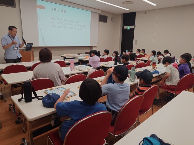 1組は集会室で、職員の方から昔の暮らしや道具についてお話を伺ったり、動画を見たりしています。