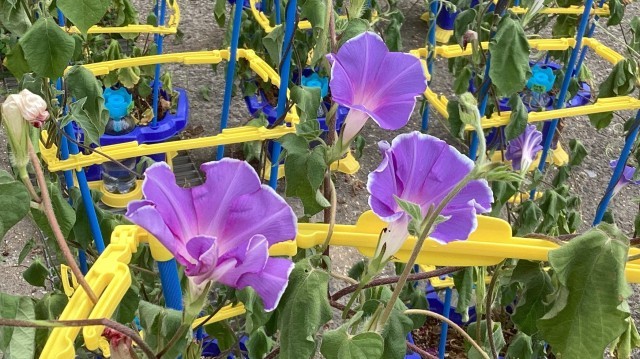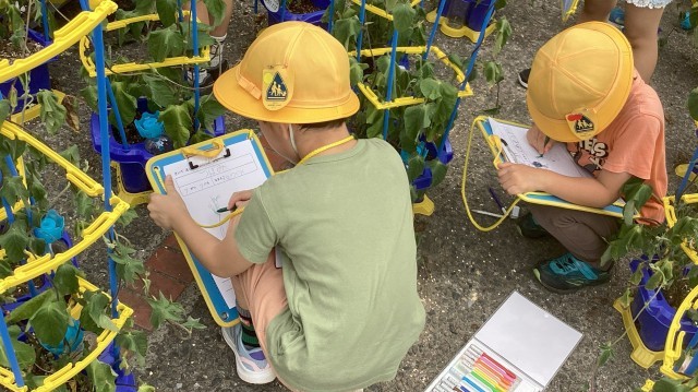 子どもたちが大切に育ててきたアサガオが花を開いています。じっくり観察をして、絵と文章で表現しました。