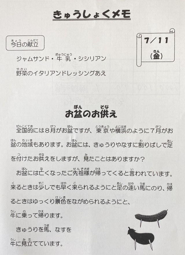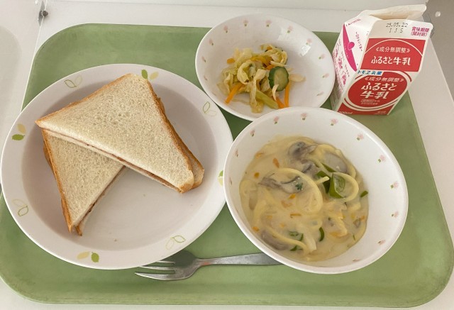 【今日の献立】ジャムサンド・牛乳・シシリアン・野菜のイタリアンドレッシングあえ