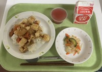 【今日の献立】中華丼・牛乳・春雨サラダ・大豆とじゃこの甘辛あげ
