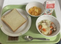 【今日の献立】食パン・いちごジャム・牛乳・ポトフ・フルーツポンチ
