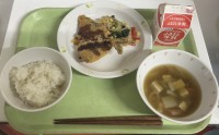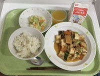 【今日の献立】麦ごはん・牛乳・家常豆腐・中華サラダ・みかんゼリー