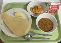 【今日の献立】ナン・牛乳・キーマカレー・かぼちゃサラダ・くだもの(りんご)