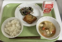 【今日の献立】ひじきごはん・牛乳・ししゃものからあげ・白菜のおかかあえ・豚汁