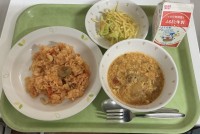 【今日の献立】キムチチャーハン・牛乳・トックスープ・フルーツヨーグルト
