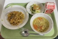 【今日の献立】キムチチャーハン・牛乳・ワンタンスープ・フルーツヨーグルト