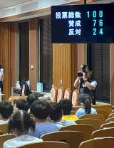 最後は採決です。参加している児童全員が議員となり、投票をします。押しボタンで賛成...