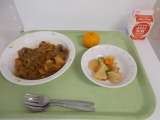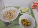 献立は、ナシゴレン、牛乳、フライドポテト、メロンでした。