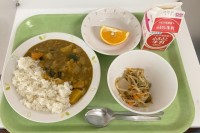 【今日の献立】夏野菜のカレーライス・牛乳・こんにゃくサラダ・くだもの(バレンシア...