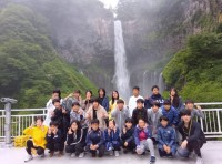 華厳の滝です。集合写真撮影なのですが、迫力ある瀑布に目を奪われてしまっていました...