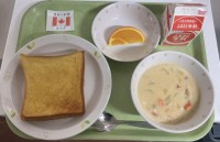 【今日の献立】世界の料理献立メープルフレンチトースト・牛乳・サーモンチャウダー・...