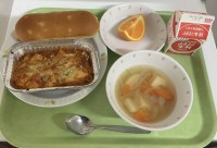 【今日の献立】パインパン・牛乳・豆腐のグラタン・野菜スープ・くだもの(清見オレン...