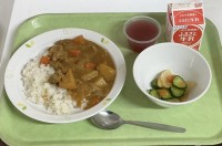【今日の献立】カレーライス・牛乳・シャキシャキ野菜・ぶどうゼリー