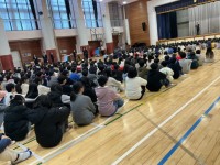 体育館で2学期の終業式が行われました。2年生が代表して、2学期頑張ったことを言い...