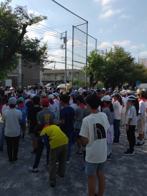 6年生元気いっぱい出発です。協力、助け合い、団結で楽しい思い出を作ってきます。