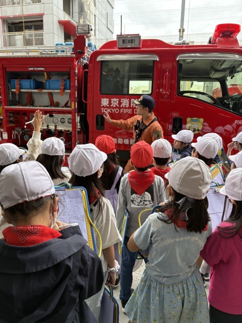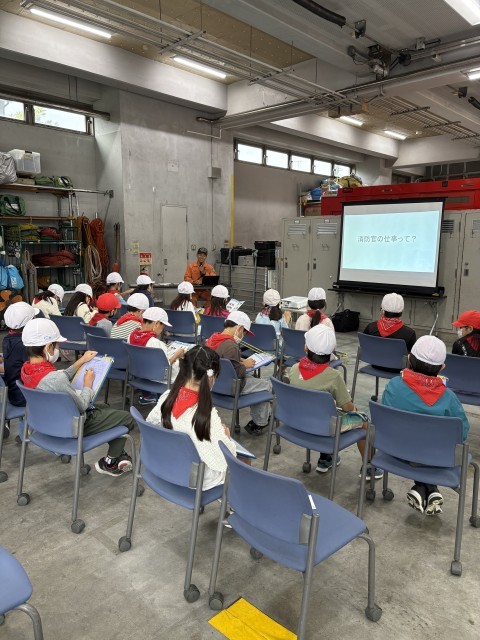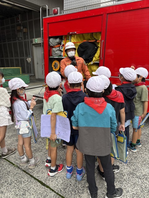 消防官の仕事内容や消防車の設備を説明していただきました。質問もたくさんしました。