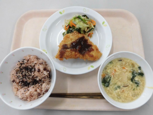 来週11月17日は、開校記念日です。少し早いですが、今日はお祝い献立として、赤飯と