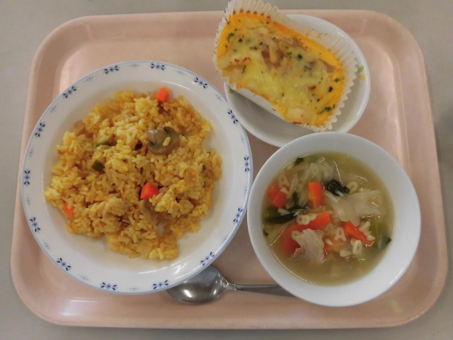 クリーム状のポテトを敷き、その上に溶き卵を流し、上にチーズをかけて焼いた料理です。焼き