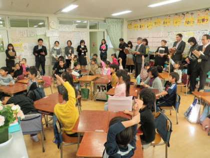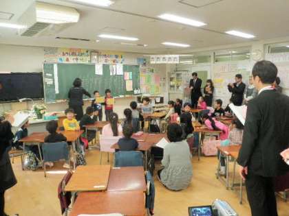 今日の授業は「なぞなぞをつくろう」という単元でした。単元のねらいは「日本に伝わることば遊びの楽しさを知る。」「なぞなぞやその答えを考え、友達にもよく分かるように説明する。」でした。子どもたちは、出題者グループの考えたなぞなぞの答えを2〜3人グループで話し合い、答えについて理由を言いながらしっかり発表していました。グループごとの話し合いがとてもうまくでき、たくさんの答えを考え発表することができました。