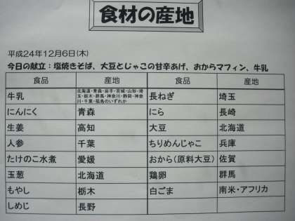 今日は、みんなが好きな「大豆とじゃこの甘辛あげ「でした。この献立は、子どもたちから「作り方を教えてください」とよく言われます。大豆は、一晩水につけてからやわらかく茹でてでんぷん(片栗粉)をつけて揚げます。じゃこは素揚げです。しょうゆ・さとう・みりんでたれを作り煮立たせ、揚げた大豆とじゃこをからめて白ごまを合わせます。ご家庭では給食のようにならないという感想をよく聞きます。