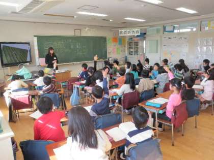 2年1組は、中国の留学生でした。国の紹介(ウーロン茶、万里の長城等)の後、雪の結晶の切り絵を作りました。子どもたちは、中国の文化や歴史など、楽しんで質問していました。切り絵は苦戦しながらも、開いたときは、びっくりしていました。