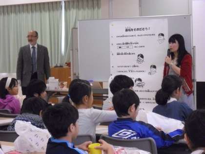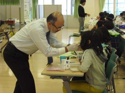 歯科校医の先生が、学校に来てくださって、口腔のやくわり、むし歯の原因、むし歯になりやすいところ、むは歯の原因である細菌について、プラーク(歯垢)、歯みがきについて話をしてくださいました。