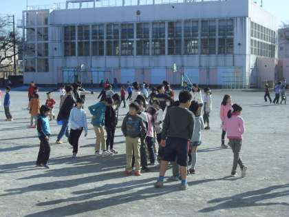 ロング昼休みを設定し、たてわり班で遊びの内容を相談して、たてわり班ごとに一緒に、教室や体育館や校庭で遊びました。
