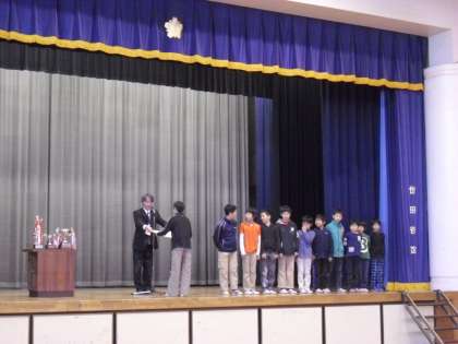 次に、赤堤ファイターズが試合でがんばり、優勝したことを表彰しました。