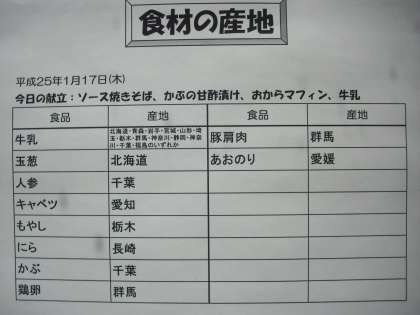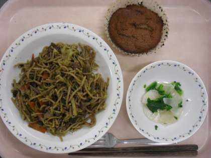 <ソース焼きそば・かぶの甘酢漬け・おからマフィン・牛乳>
