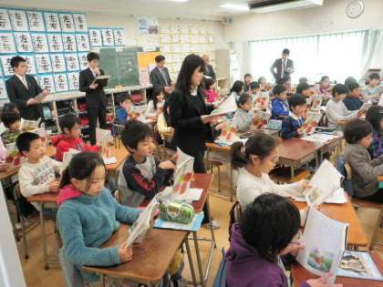 4月に始まった塾生の特別教育実習も1月末で終了です。今日は、各大学の教授1名ずつ、東京教師養成塾の教授1名、区指導主事1名が参観されました。4月から数えて35時間目の授業、研究授業としては8回目になります。