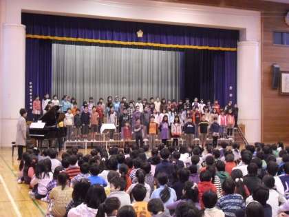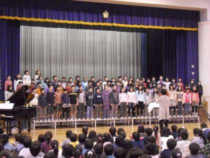 合唱団の3年生〜6年生の児童が、「待ちぼうけ」と「ほほう!」を合唱しました。