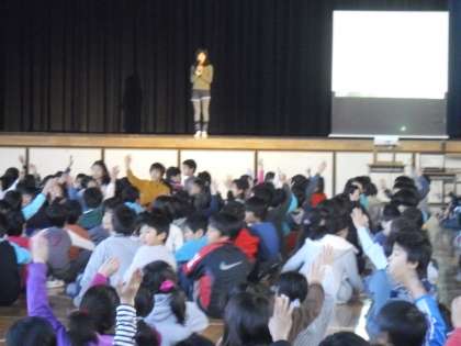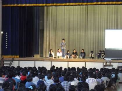 毎月作っている広報新聞についてのクイズを行ったり、50年後の学校を予想したクイズを行ったりしました。