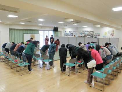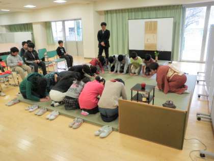 学級ごとで、裏千家の先生方にお茶の飲み方だけでなく、お菓子の食べ方、座り方、あいさつの仕方を教えていただきました。「和敬清寂」心を和ませる一時でした。卒業式のあいさつもこれでO.K!