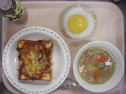★たてわり給食 <ピザトースト・ポトフ・おかしな目玉焼き・コーヒー牛乳>