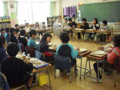 今日は今年度最後のたてわり活動で、班ごとに教室に分かれて給食を食べました。今日の献立はすべて6年生のリクエストに入っていましたが、その中でも1番多かったのがコーヒー牛乳でした。おかしな目玉焼きの白身の部分はカルピスゼリーで、黄身の部分は黄桃缶です。