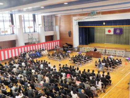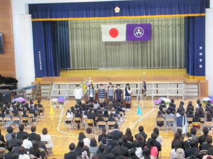 風もなく、いい天気の中、77名の新1年生を迎え入学式を行うことができました。6年生の全員合唱「翼をください」の歌声で、新1年生が入場しました。入学式は1時間弱の時間でしたが、新1年生は「ありがとうございます」のあいさつがしっかりでき、しっかり話を聞くことができました。