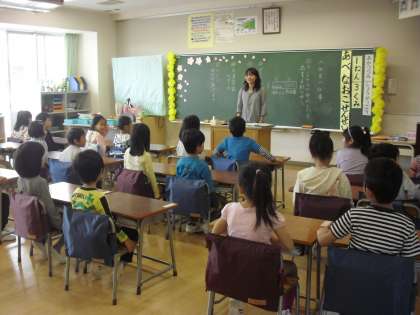 授業が始まり、1年生は、真剣に、先生の話を聞いています。