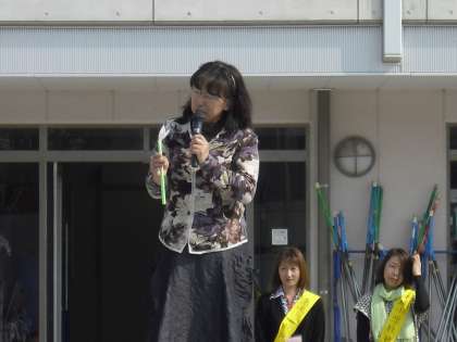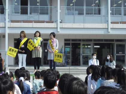 次に、1年1組の田中主任教諭が、自分の安全を守るためにも、廊下の歩行に気を付けたり、友達のことも考えて安全に過ごすようにと話しました。