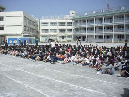 全学級がそろい、校庭に集合が終わった時には、ピタッと静かになり、さすがと感じました。1年生も、素早く集合することができました。