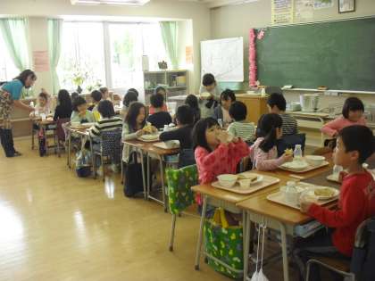 今日から1年生の給食が始まりました。はじめての給食の配膳と後片付けをがんばりました。これからどんどんできるようになっていきます。