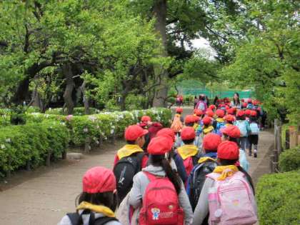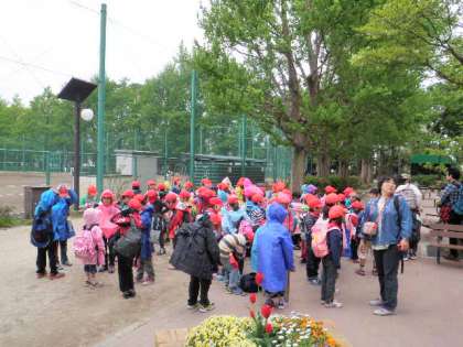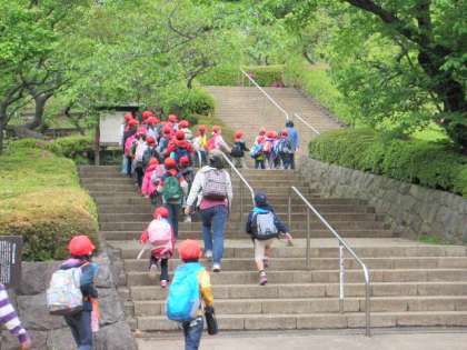 天気はなんとか大丈夫ということで、出発いたしました。20分歩き羽根木公園に着いたところで、風も強くなり、雨が降ってきましたので、思い切って延期することにいたしました。子どもたちは、とてもがっかりしていましたが、安全上無理をするべきではないと判断しました。子どもたちは、往復1時間しっかり歩きました。