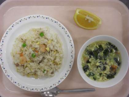 <チャーハン・卵とわかめのスープ・甘夏・牛乳>