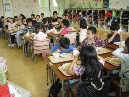 今日は卵がメインの献立でした。良質のたんぱく質と言われる卵は、アミノ酸価(必須アミノ酸の割合)の基準(卵:100)になっている食品です。赤の食品群のなかまで血や筋肉のもとになります。