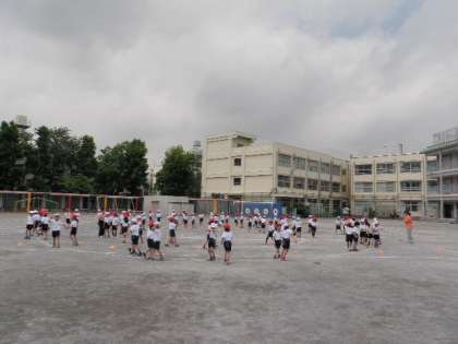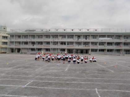 小学校の広い校庭で初めての運動会です。子どもたちはもちろんのこと、保護者の皆さんもとても楽しみにしていることと思います。1年生の団体演技は「わくわくダンス」です。今日は、隊形を確かめながら踊っていました。これからどんどん上手になって当日を迎えます。