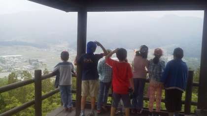 虚空蔵まで465段の階段を上がりました。展望台の様子です。これから田園プラザまで下りて昼食です。