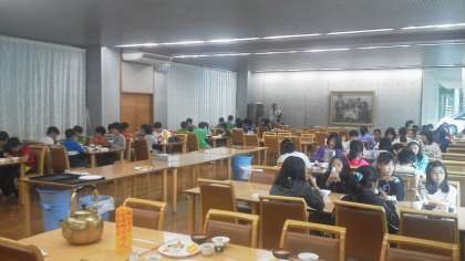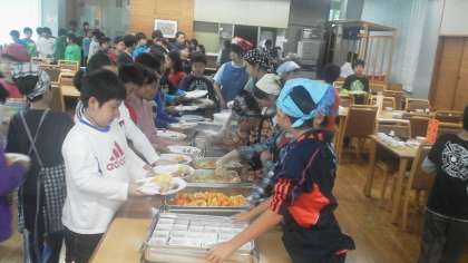 朝食の様子です。今日は、鉱石山登山です。皆よく食べていますので、しっかり歩けるでしょう。