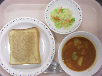 <セサミトースト・トマトシチュー・キャベツサラダ・牛乳>