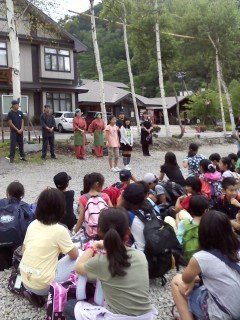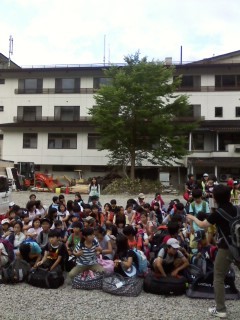 宿に着き、開室式を行いました。バス酔いする子もなく、皆元気です。天気は今は曇りです。涼しいです。
