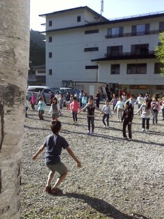 良い天気で朝を迎えました。それぞれに睡眠をとった子ども達は皆元気です。朝会では、引率の阿部教諭の話を聞き、ラジオ体操をしました。空気がひんやりさわやかです。